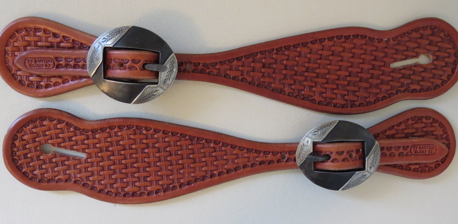 https://must-fish-western-tackle.myshopify.com/collections/spur-straps/products/new-handmade-ty-barton-garcia-style-basket-stamp-spur-straps-stephen-white-buckles