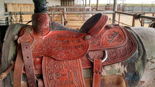 This is a Larry Coats "Lazy L" Saddle. The saddle was won in 2015 and presented for AJRA WORLD CHAMPION HEELER. It has a 14 inch seat. Will ship. Asking $1100.