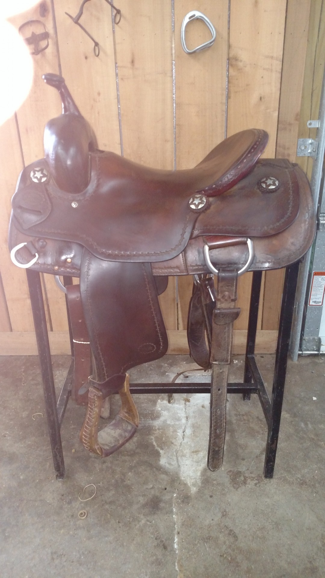 16 IN.SEAT, IN SKIRT FRONT D, BARBWIRE BORDER WITH STAR CONCHOS,SOLID, PRICE 1750_ CELL 731/446/6685