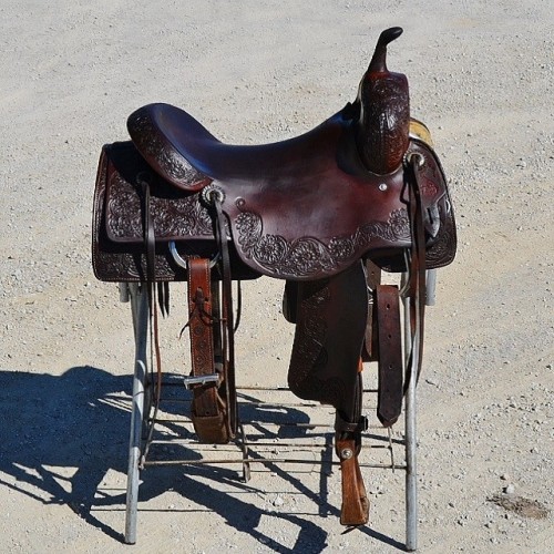 A very nice 16.5" Jerry Shaw Cutter. A good solid saddle and priced right. Soft and supple but could stand a good deep cleaning in the tooling. $1450 delivered in the lower 48 states.