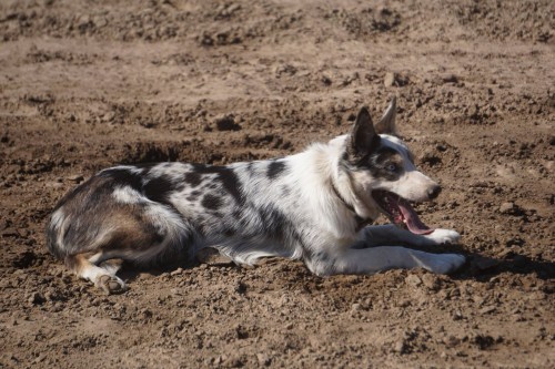 Tripp is an awesome little prospect. He is just over a year old, has a SOLID start on him, good down, LONG outrun, pretty reliable on his directions. He bites a LOW heel and right on the nose. Super natural and REALLY easy to work with. He LOVES people and is happy, friendly and good with kids or other dogs.