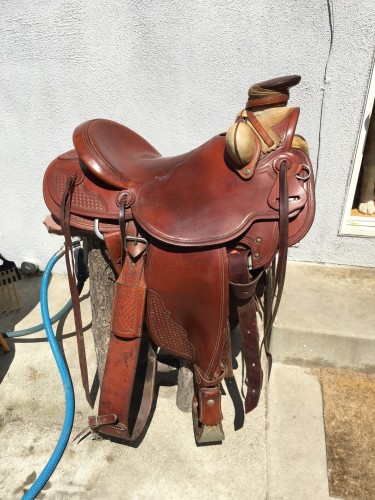 This McCall 98 Wade is in excellent used condition. It is is a 98 Wade on a on a 16" Tree with SQH bars. It has quarter basket weave tooling and border. I am including bucking rolls, near and off latigos and a McCall rear cinch. You will not be disappointed! I will ship in the US. Shipping should be between 50 and 90, depending where you are located.