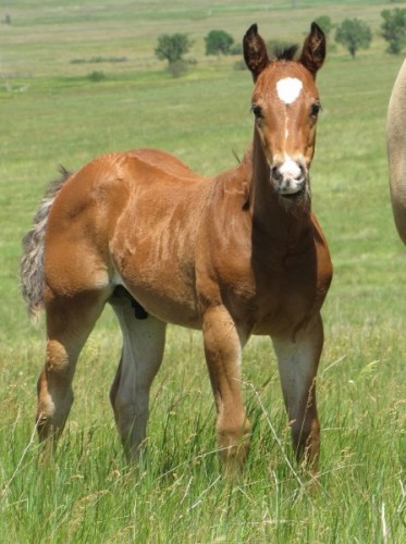 ‘Torino’ is a nice bay stud colt with a large star, white hairs on strip, large snip, left front white pastern, left and right rear white pasterns. Mama, Tiff, is one of our top mares and comes through with friendly top babies every year. They all have broken out well and that makes us extra excited about this little guy. Tornio’s dam, Mujer Lady Dial JW aka Tiff, is one of our Mujer Tacky Jay daughters. She is 81% NFQHA and was purchased from Grantier Quarter Horses because her mare line is very close to several of our VERY PROVEN ranch horses. Mujer Tacky Jay, now deceased, made a name for himself producing using horses for the family, ranch, arena and youth. We really believe in these horse families. We really like Tiff’s stout build and kind personality. Her foals should be a very friendly and well-put-together with this mare as their mama. Her 2010 buckskin filly, Paddys Gin Dakota JW and 2011 bay colt, Paddys Gin Boba JW have stayed in ND. Both have broken out well and are currently being used on ranches. Her 2012 palomino filly, Paddys Gin Sage JW is in TX and shows tremendous potential in ranch versatility. Her 2013 bay filly, Paddys Gin Boogie JW, headed to North Carolina with a repeat buyer and will not disappoint. Her 2014 foal, Whiskey Up Stitch JW, was the first pairing from this cross and headed to California and has started nicely and her 2015 foal, Whiskey Up Amigo JW, is now in Nevada as a roping prospect.