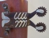 Measurements: Heel Bands a little less than 1”, Shank 2”, Rowels 1 ½”, Rowel Points 16, Heel Opening 3 ¼”, Weight of both spurs 1 pound 4.6 ounces