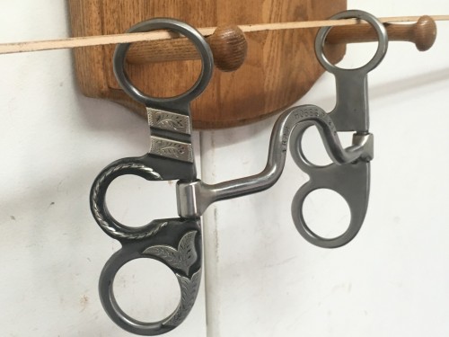 sale pending---Unused bit made by Mick Hobbs and marked 3R22HOBBS71216. 5 1/4" cheeks and 5 1/4" mouth. Nice using bit with nice silver and steel work. We pay shipping within the 48 states and accept most forms of payment.