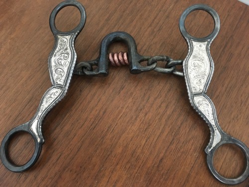 sale pending---Very nice Grijalva made bit, that is marked EG*MAGDALENA SON. Copper inlays in the back of the port, with copper rollers. 5 7/8" mouth and 5 1/2" mouth. Popular style of using bit, by a highly desired maker. We pay shipping within the 48 states. We accept most credit cards, Pay Pal, most credit cards, money order, check