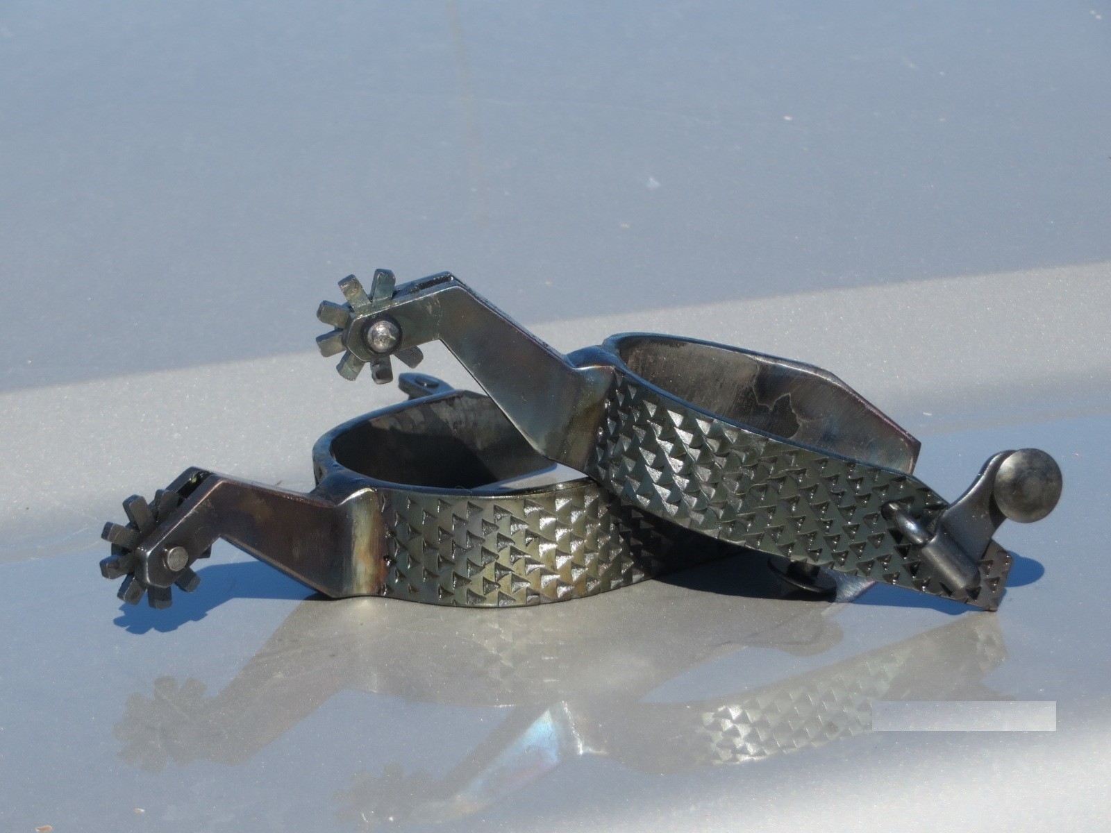 Handmade Bits & Spurs for Sale: Lance Dixon - One Inch Band Blued Rasp Spurs #17 SOLD #63826