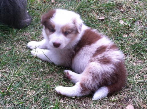 Purebred Border Collie Puppies for sale.We have 3 males and 2 females left. These puppies are family raised and kid friendly. They have been handled and played with since they were born.All of them have great dispositions. Their mother is a golden tan and their father is a brown/grey and white merle.Their parents are both super intelligent with great temperaments-no biting or meanness.These puppies will not only make good working dogs but good family dogs,too.They will be wormed and have their first puppy shots.