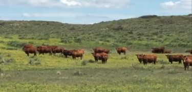 75 Red Angus heifers AI’d to Red Angus sire Schuler Rebel and cleaned up with Black Angus low birth weight bulls from Gardiner, BJ, Leachman, and Benoit. Complete vaccination and parasite control, including PregGuard 10, Multi-Min 90, Bangs, and Dectomax pour-on. These heifers calve January 29 - March 30, will weigh 1050 lbs., and deliver around November 1, 2016.