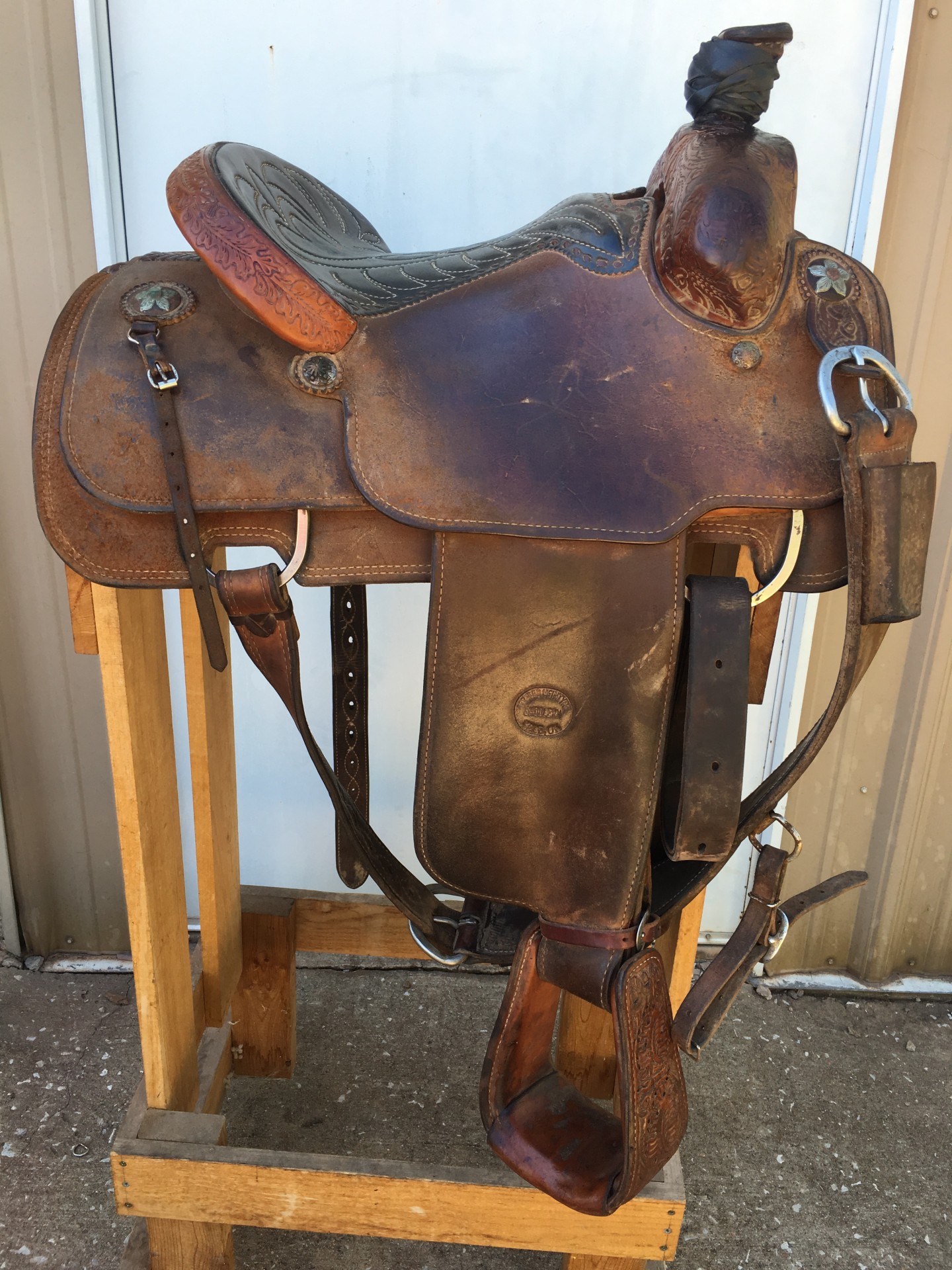 High quality saddle made by Travis McIntrye of Yale, Oklahoma. His saddles are being ridden by quite a few PRCA ccowboys and have been ridden at the WNFR. This saddle is on a 15" tree and will ride just a little samller. No issues, 4 Will Daniels made conchos, back cinch. Hard to find used roping saddles of this quality. It is priced many hundreds under his price. We will pay shipping within the 48 states and accept most forms of payment.
