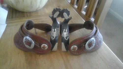 Handmade spurs by Weatherford spur maker Tim Turner...single mounted. Spur straps by Craig Lewis. Saddle Maker