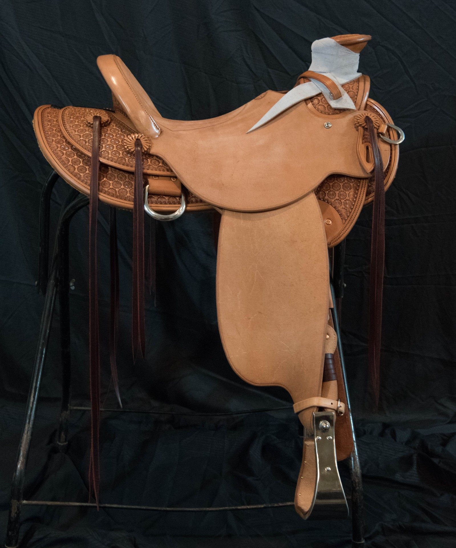 Built on a Warren Wright wade tree, half breed pinwheel stamping, 15 1/2 inch seat, 3/4 rigging, roughout seat and fenders. $4200. Call 406-600-8665 for more info.