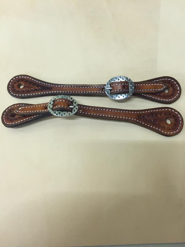 This is a hand made set of spur straps,with hand made rasp buckles.The leather is wickett and craig they are backed up with latigo leather.The buckles have my makers mark stamped in the back.This set is made to last a long time.Calls welcome 7 days a week.I can take a credit card over the phone as payment.