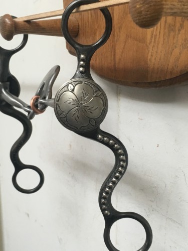 sale pending---Gary Wiggins made bit that is marked WIGGINS 51.SP.16. 6 15/16" cheeks, 5" mouth, 1 1/2" hand engraved conchos. Handy using/training bit. We pay shipping within the 48 states and accept most forms of payment.