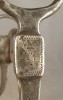 Hand made bit by early Texas maker James Oscar Bass. 6" cheek, 5" mouth with a 1 1/4" tall port. Original silver piece on one side, other side is missing but solder is still there. Natural patina. Marked "MADE.BY.J.O. BASS.TULIA. TEX. NO.85." on left cheek. Bit shows many years of cowboy use and wear. It bent some and twisted some. BUT, it is an early Tulia marked bit. I will stand behind the bit, the silver and the marking to be genuine. Very hard to find bit for your collection. 1400 shipped priority mail. Call, text or e-mail