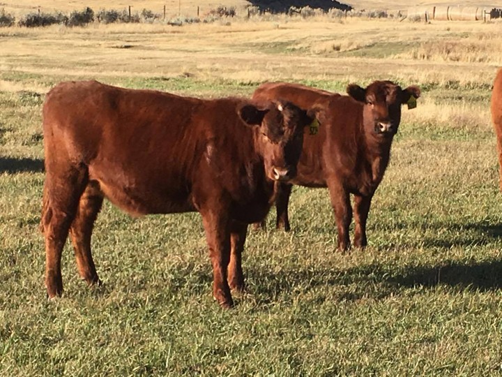 For sale are 61 home raised Red Angus Heifers that come from big rough country northwest of Cheyenne, WY.