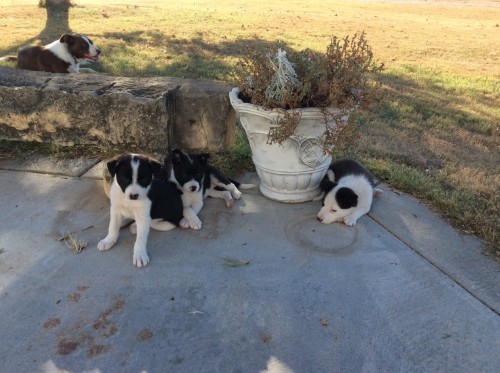 Pure bred black and white, short to medium hair, 12 weeks old, will have second round of shots and wormed. These puppies have great linage. This is the second set of pups from the dam and sire, first set turned out really well and bred them back again. Will be medium size dogs.
