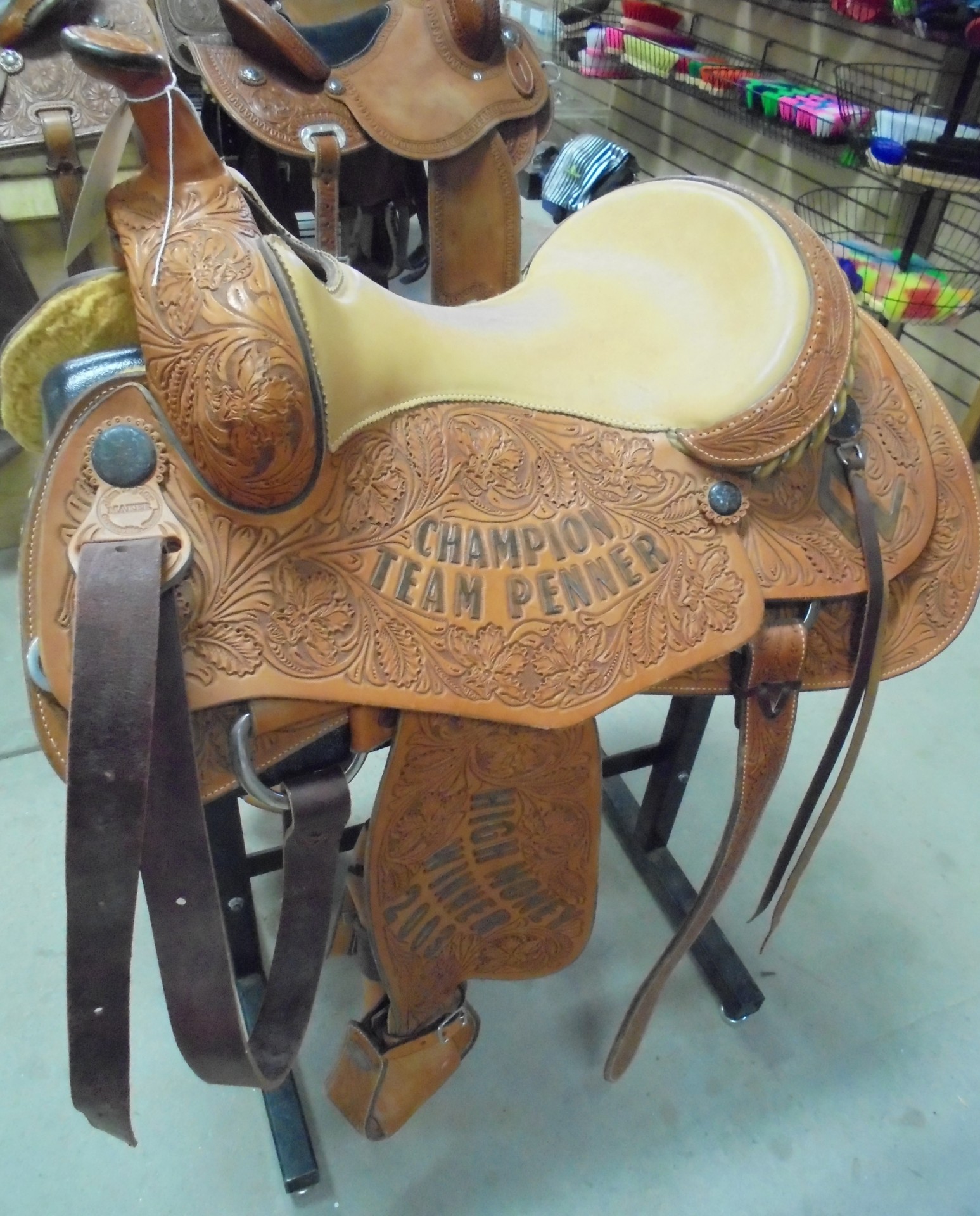 This Jim Taylor reining saddle is like new. Beautiful craftmanship and all leather including the seat. Use this for any team penning event or reining competition!