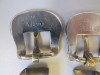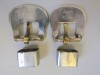 This is a pair of used handmade buckles made by Joe Adams. Joe Adams is a silversmith from Tulia, Texas. The buckles are marked Joe Adams 2013 on the back. They are engraved nickel. There are marks on them from use.