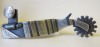 Measurements: Heel Band Width a little less than 1”, Shank a little over 2 ⅛”, Rowels 1 ½”, Rowel Points 14, Heel Opening 3 ¼”, Weight of both spurs 1 pound 3.6 ounces