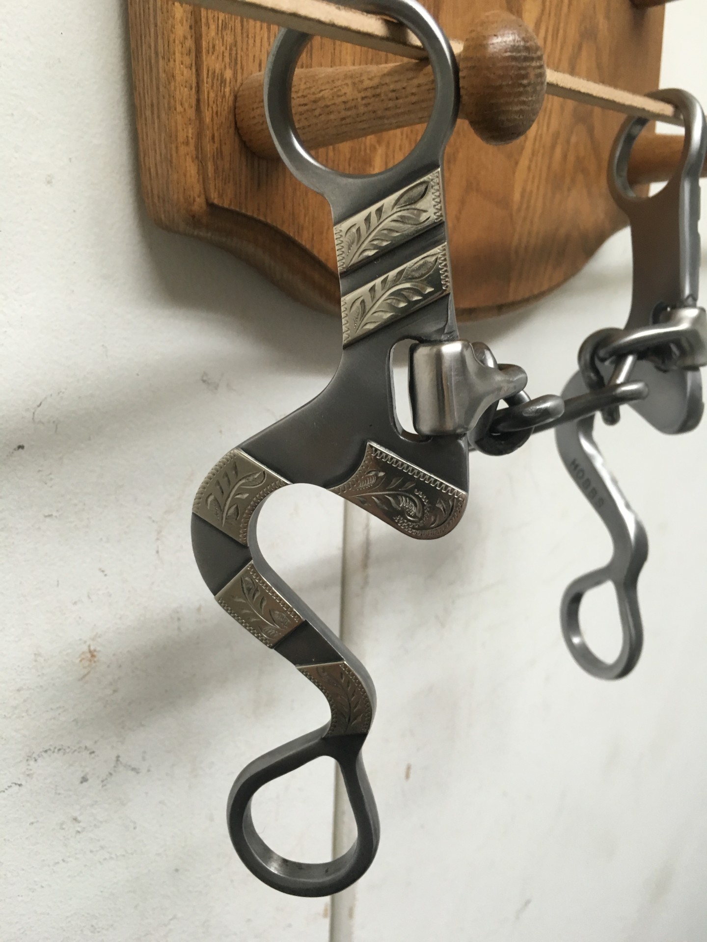 sale pending---Unused bit marked HOBBS 2016 and made by Oklahoma maker Mick Hobbs. Copper in the back of the port, 6 3/4" hand engraved silver mounted cheeks, and 5" mouth. His bits are popular with many horsemen. We pay shipping within the 48 states and accept most forms of payment.