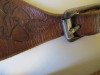 This is a used pair of handmade floral carved spur straps made by Bill Heisman from Tucson, Arizona. Bill is listed in Bits & Spurs Motifs, Techniques and Modern Makers by Ned and Jody Martin. Bill moved to Tucson in 1990 and started using the Bill Heisman Tuscon Arizona mark so these straps are post 1990. Bill built bits and spurs and also did leather work before he retired due to health issues. He is one of the founders of the Traditional Cowboy Artists Association and a past president of that organization. The straps are a lighter weight skirting leather about seven to eight ounces. The buckles on these straps are nickel plated steel and some of the nickel plating is gone. They are attached to the straps with brads. He is an outstanding maker and his work is very collectible. This would be a nice pair to display with a pair of spurs or could still be used.