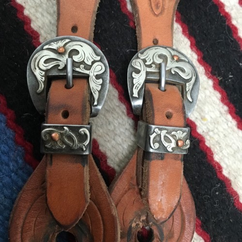 Handmade Bits & Spurs for Sale: KERRY KELLEY BUCKLES ON SPUR STRAPS SOLD #68858