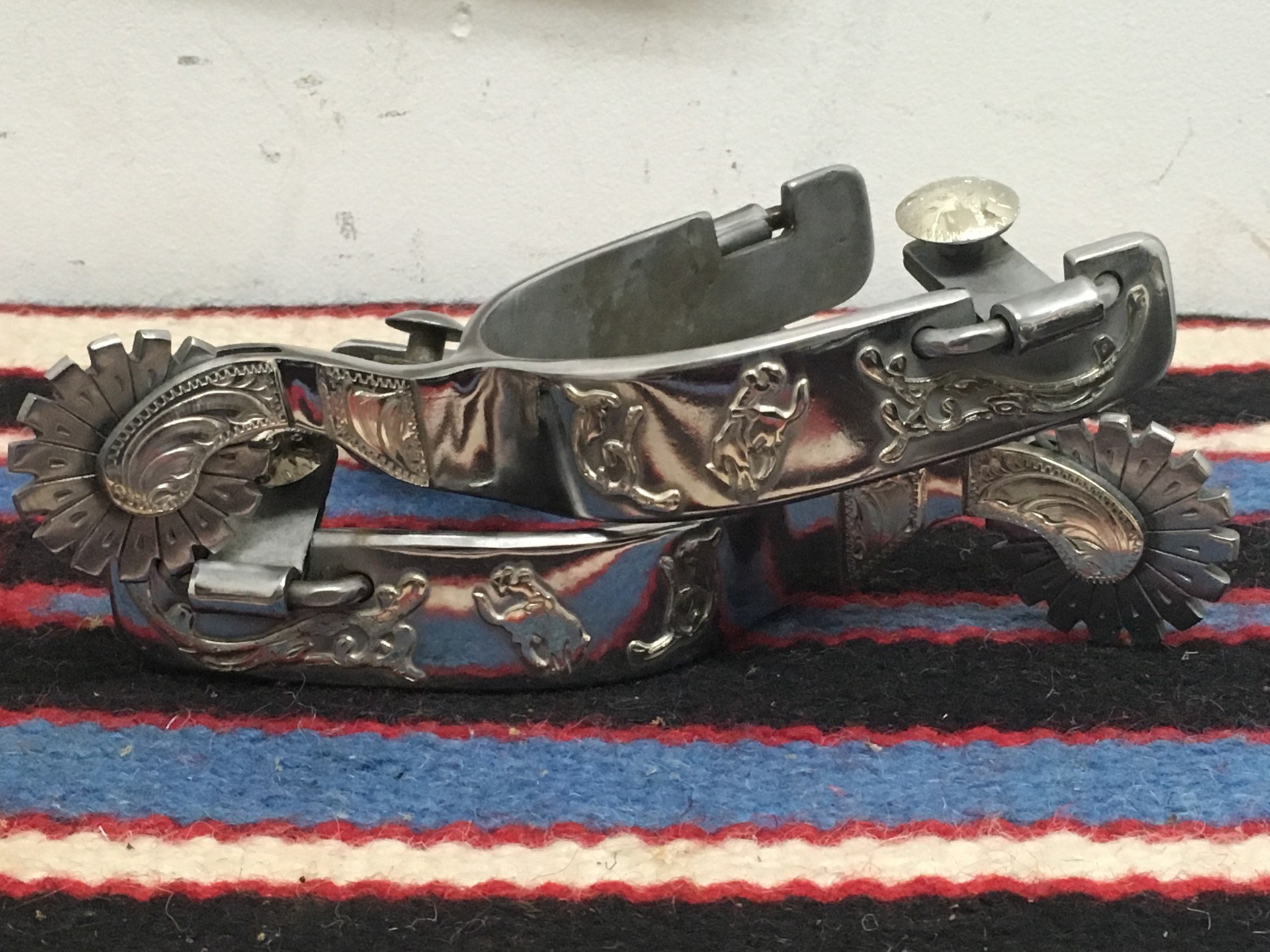 Handmade Bits & Spurs for Sale: HOSTETLER MTD SPURS BUCKING HORSE SOLD #68959