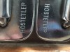 sale pending----HOSTETLER MOUNTED SPURS: Rick Hostetler made spurs with 3 3/8" heel openings, 1" bands, 2 3/8" shanks, 1 1/2" rowels marked RH. Rick is a long time Texas maker. These are steel and will get brown with use. We pay shipping within the 48 states and accept most forms of payment.