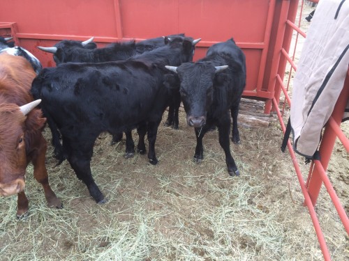 5 fresh steers these are the right kind. Horns tipped now ready to go.