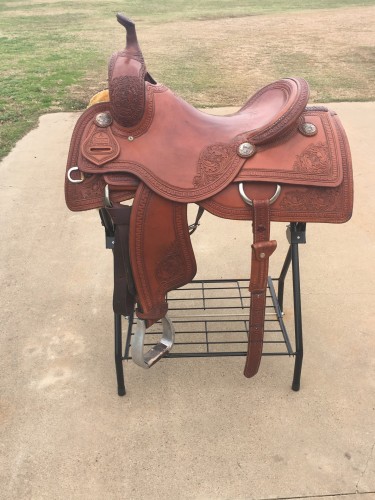16" Cutting Saddle made by A Custom Saddlery out of Fort Worth Texas. This saddle is practically brand new has only been ridden very lightly Three Times! This saddle is the best quality and rides great! Deep pocket to help you sit down in the saddle. Beautiful tooling work and color highest quality!! An amazing cutting saddle ready to show in! These saddles sell for $5,500 brand new so this is a great buy! Price is negotiable. Serious Inquiries Only!! Saddle will be shipped. Don’t miss this deal on an amazing cutting for more info
