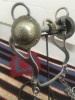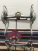 VISALIA CONCHO BIT W/REIN CHAINS: This bit is marked VSS PAT. It comes with rein chains, in very good used condition, 4 7/8/" mouth, 2 1/2" domed conchos, 6 3/4" cheeks. This style of bit is deep in tradition, as it was often used by John Wayne and Randolph Scott in the movies and is still being used by working cowboys today. Nice bit to add to a collection. We pay shipping within the 48 states and accept most forms of payment.