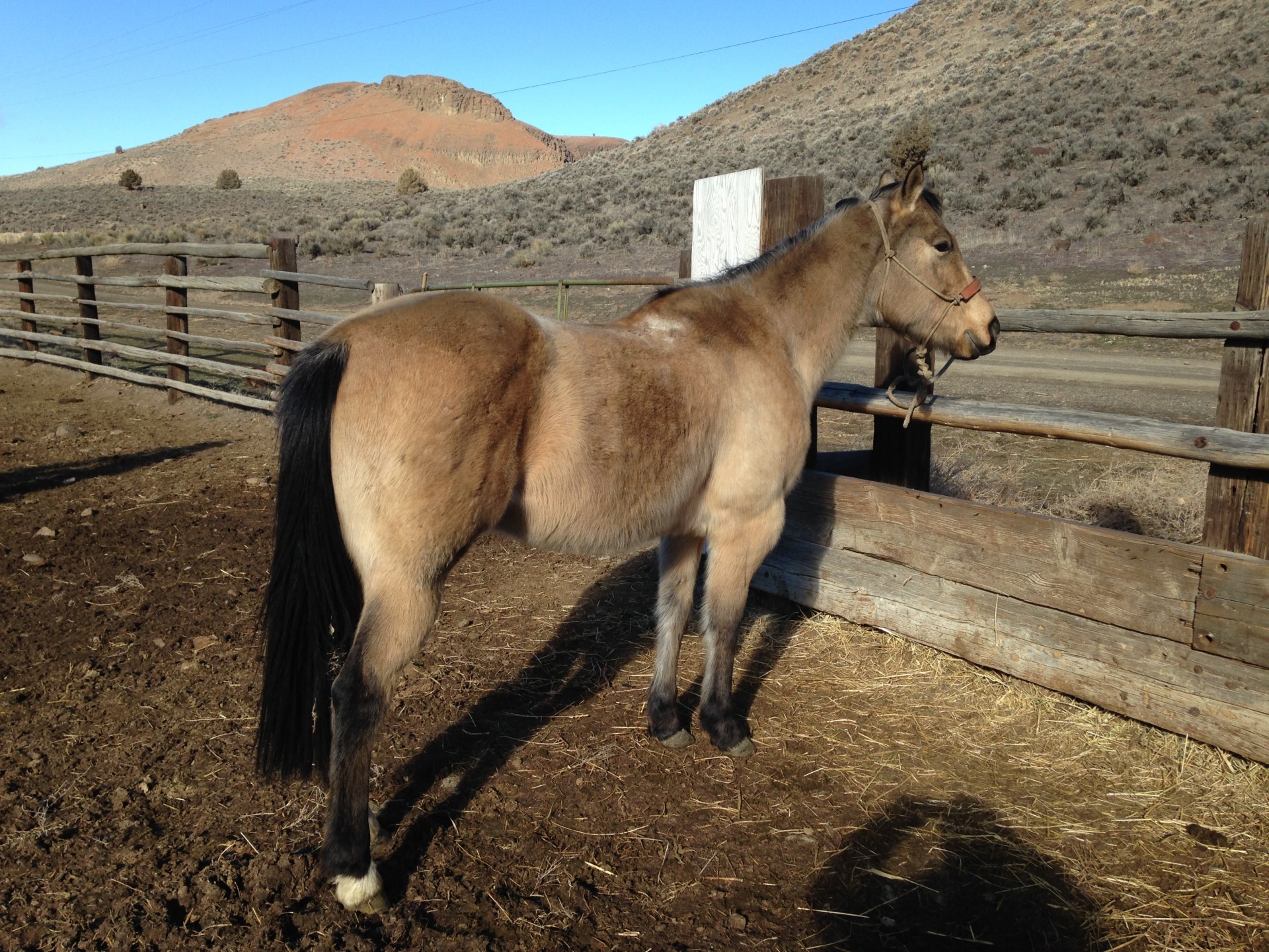 Good circle horse and trail horse. Nice 9 year old mare that travels out really well over any kind of country and goes for days, shoes very easily, trailers, rope and drag calves off of her. She has a huge heart and is very willing.