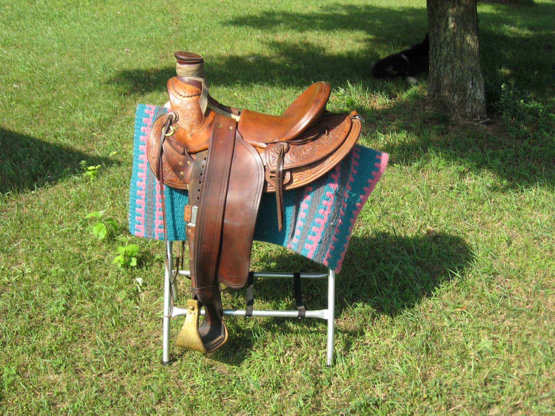 I have a custom Norm Marks half seat saddle. It has a rawhide covered tree with a 15" seat. It has brass Monel stirrups along with matching tapadero’s. It weighs 31 pounds with Monel stirrups. The tapadero’s weigh 7 pounds. It is in good usable condition.