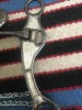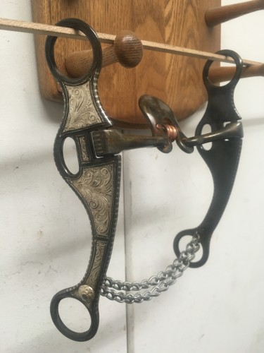 Unused bit from the Grijalva shop in Magdalena Son. Juan Grijalva has been had making bits there since the earlier 50’s and still does it the old school hand made way. This bit has 7 3/4" cheeks and 5 1/4" mouth. A horseman’s favorite! We pay shipping within the 48 states and accept most forms of payment.