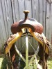 Don Rich Cutter. 15.5 in seat. Excellent condition. Padded seat. Basket tooled with barbed wire trim.