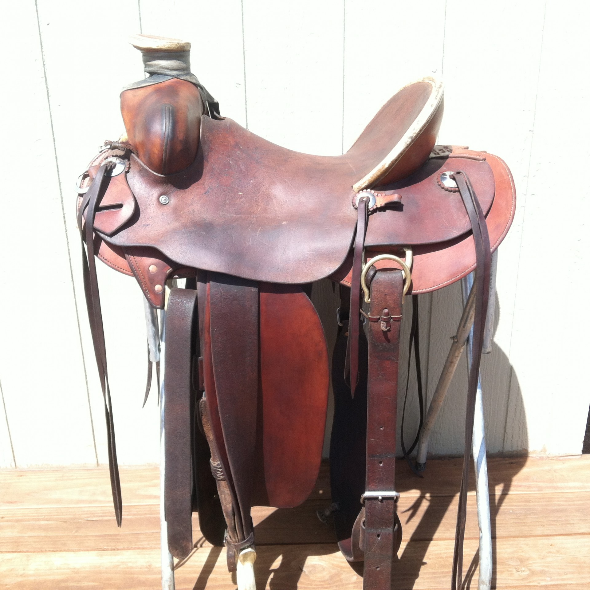 Maker -Bill Veach, Cortez, Co. Double bullhide 14.5"swells, 14 x 5 cantle, 4 x 2.5 wood post horn, 7/8 flat plate rigging. this saddle is only a couple of years old and is in great shape! very stout and built for roping. ready to ride.