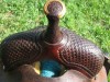 I have a custom Langerud cutter #336. It has Semi Quarter Horse bars with a rawhide covered tree and 16" hard seat. It is a half breed with rough out seat and fenders. Basket stamp pattern on the swells and skirting. It is a rich burgundy color. I have several saddles made by Cliff Langerud. He builds a quality, well built saddle - comfortable for both horse and rider.