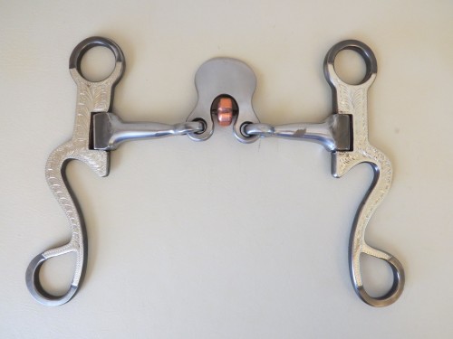 Measurements: Mouth Piece (between collars) 5 ¼”, Cheek Pieces 7 ⅛”, Spoon Height 2 ¼”, Bars Diameter ½”, Bit Weight 1 pound 3.6 ounces