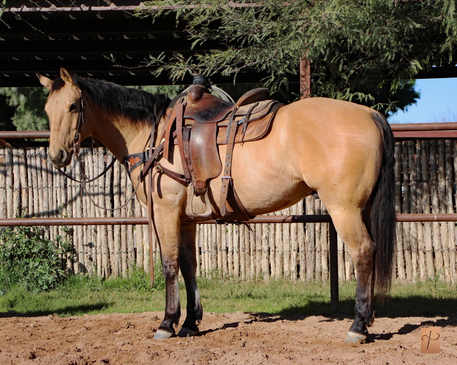 "V.O.” is a 7 year old buckskin gelding. Super proud of this horse. Very, very gentle and broke. Will really watch a cow. Great outside. Finished head horse. Been hauled to World Series and regular jackots. One of the nicest horses I’ve ever put in a public auction. No holes. Whoever buys this horse will keep him forever. 15.2 HH,1200 lbs. Fancy to look at.