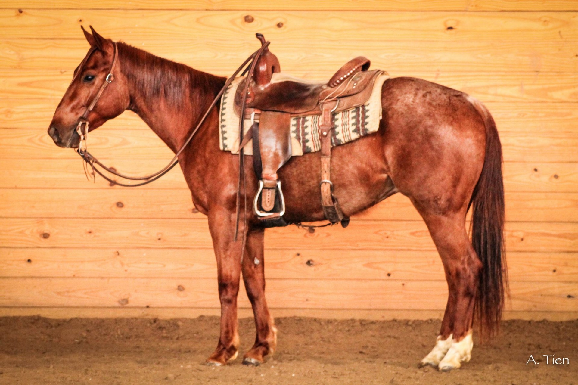 Athletic, flashy, 3 year old red roan gelding by a son of Playboy Boonsmall and out of a daughter of Annie’s Little Pepper. "Cinnamon" has has a great start on him, and has been inside, outside and on the flag. We’ve hauled him to shows, turned back on him, and gathered cattle. Talented and easy to ride. He is an excellent prospect! Text, email or call for video. 402-440-4736