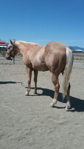 This is a gorgeous 2 year old palomino gelding with some super nice moves. He’s by a stallion with an impressive pedigree. Already under saddle & has been drove a lot. Super soft & wants to please. Could go any direction & ready for a rider.