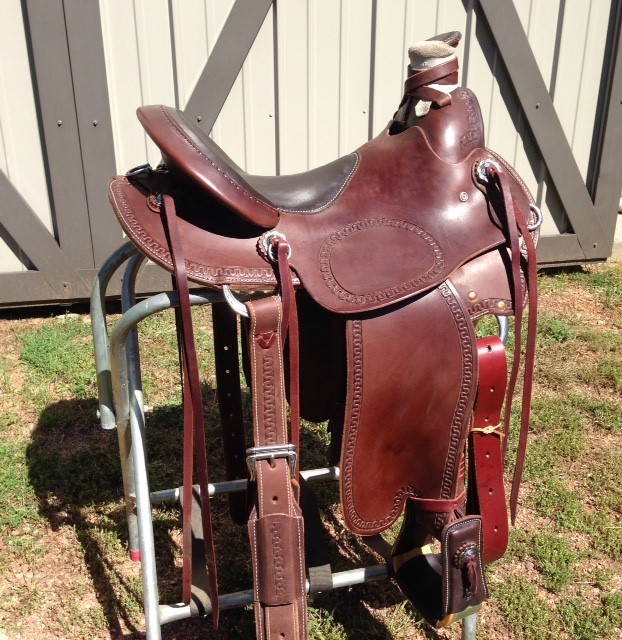 For sale, almost new R W Bowman custom made A Fork, 15 inch padded seat, full quarter horse bars, stainless steel double C rigging, gullet height 8", Running W tooling, Jeremiah Watt horseshoe hardware. Saddle has the Equi-Fit Classic Tree made by Steele Saddle Tree Company. Weight is 32 lbs, skirt length is 25". I paid $1795 new, asking $1550. buyer pays shipping. Thank you for looking.