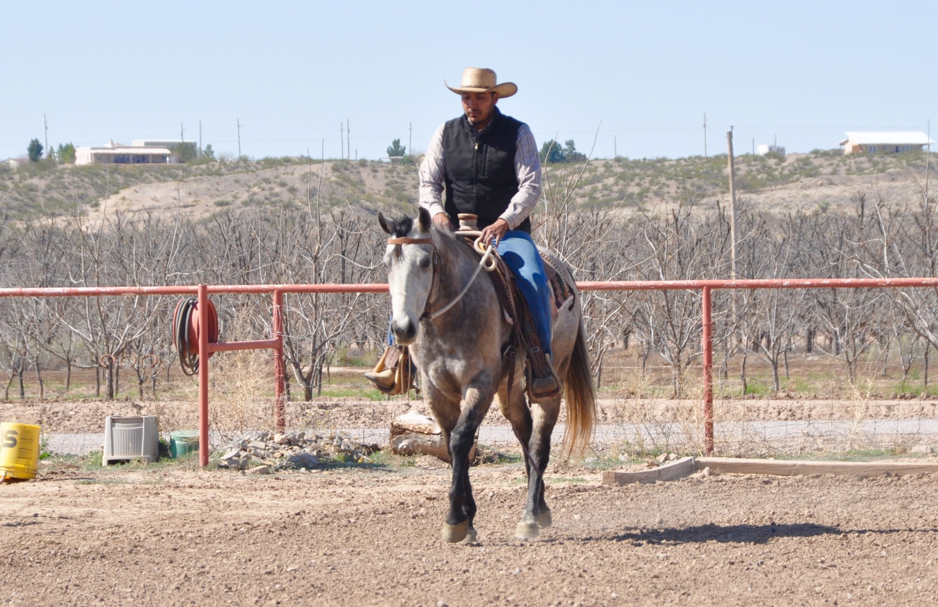 Gentle friendly in your pocket five year old Gray gelding . Very pretty! Spent three months in training with Rudy Lara Jr. Good on trails as well as in the arena. Easy to load, clip, wash, and shoe.