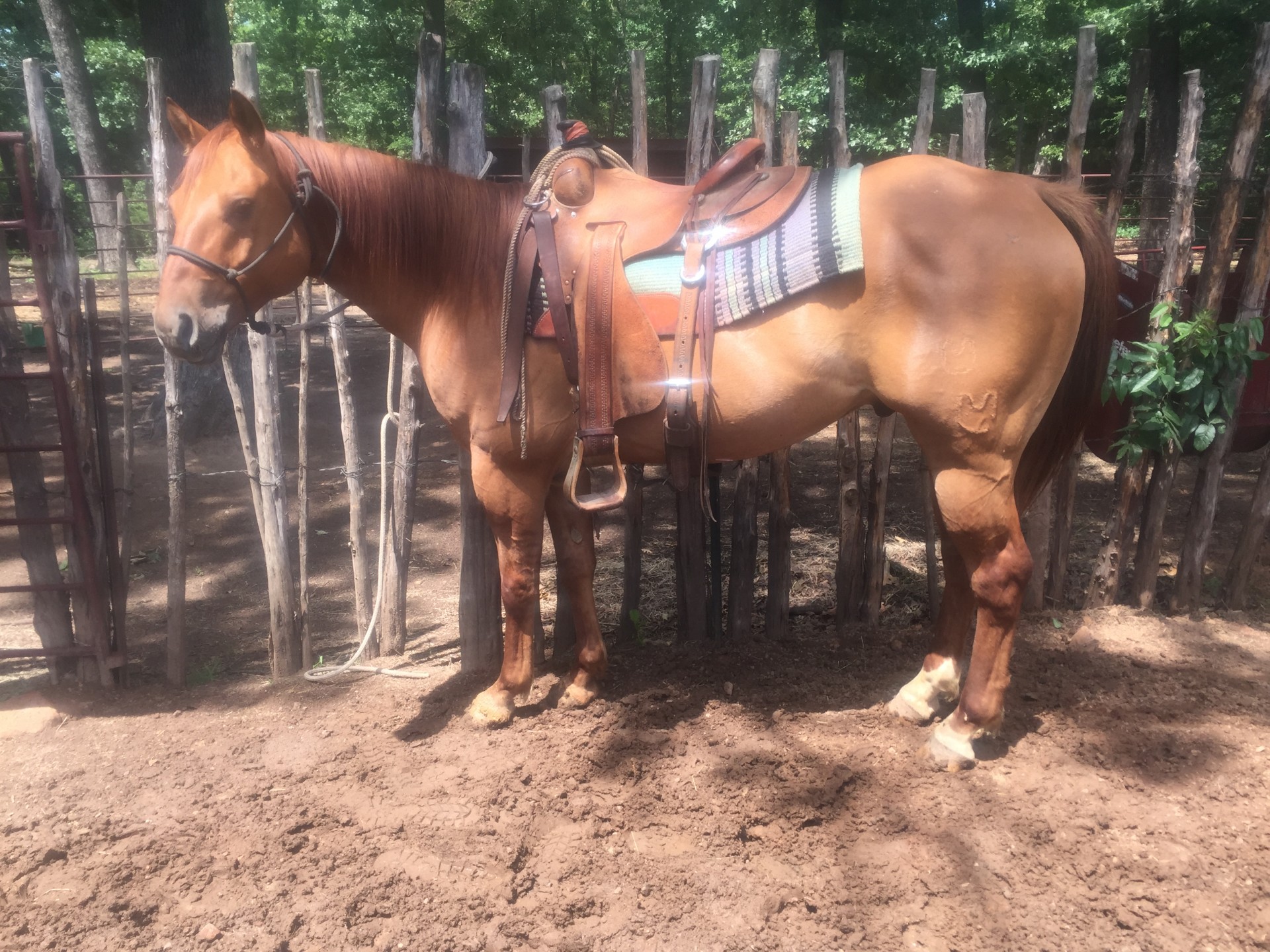 Cody is a 5 yr old Aqha registered ranch gelding. He is 15 hands , 1100 lbs, super gentle , has a lot of conformation with a kind eye. He has been day worked on all over Mississippi and Louisiana by a good cowboy. He has caught wild cattle in the swamps and brush, drug calves to the branding fires and loaded lots of cattle trucks. Always gentle rides low headed and quiet . Most anyone can ride Cody that can crawl on his back. Cody doesn’t pop his tail or gap his mouth when asked to do something, he just tries to please you . He hasn’t offered to act up in any way. He is easy to shoe, vaccinate and worm.