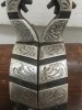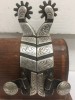 $712 marked spurs by Wayne Dollar. This pair has not seen too much use, rowels are tight. Appear to be sterling mounted. He is a long time maker and have not seen that he is even making anymore, but not for sure. This is a very wll done pair ane a very good using style and have the look. 15/16" bands, 3 5/16" heel openings, 1 7/8" shanks, 1 1/4" rowels. We accept most forms of payment and pay shipping within the 48 states.