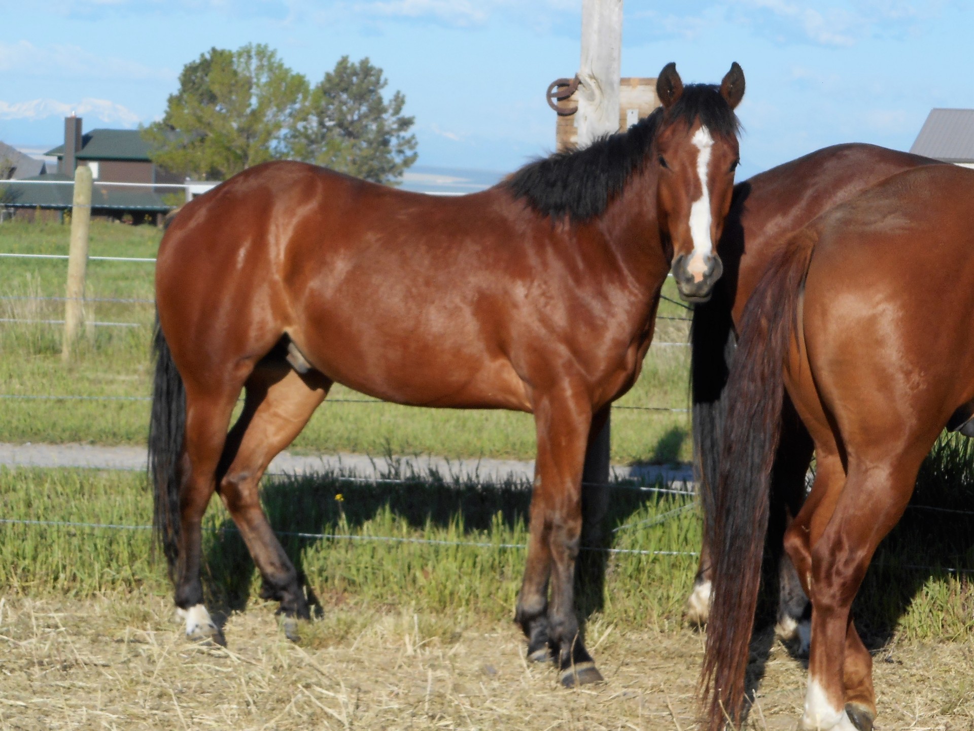 colt. He has not been started, so he is fresh for someone to get him going. He has been handled trimmed etc. and likes people and attention. He grew up in mountain terrain, good footing, good strong bone,and is very sound.