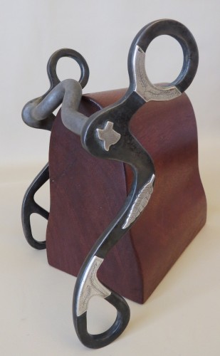This is a handmade bit made by Nick McCasland from Paradise, Texas. It is marked McCasland inside one cheek piece. It does not look like the bit has ever been in a horse’s mouth. It is a well-made steel bit mounted in sterling silver. This would be a nice bit to use.