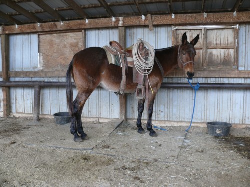 Alexa is a seasoned 12 year old bay molly mule standing 15 hands and weighing 1100 pounds. She is in the bridle, rides one handed, neck reins and leg cues. This is a fancy molly that moves out like a mule should. Rough terrain, water, obstacles, and traffic are all navigated with ease. She is an agile and confident leader and respectful follower. She has worked on ranches and feedlots with plenty of trail riding and some arena work. She handles a rope. Call Oly for more information at 970-556-4820.