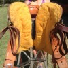 Custom made Teskeys all around ranch saddle. 16" hard seat leather covered cantle with lazy border. Butterfly skirts for close contact with short fenders. Saddle is 7/8 tooled with Flower waffle pattern. Comes with aluminum stirrups and all clinches. Saddle has been ridden less than 10 times.